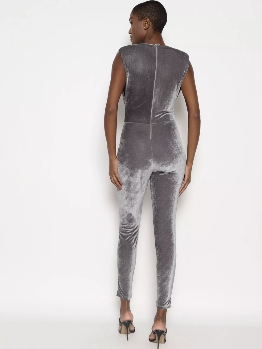 Esse macacão slim de veludo da Colcci na cor cinza é uma peça super estilosa e sofisticada! A modelagem slim valoriza o corpo, trazendo um visual moderno e elegante. O decote V e os ombros forrados dão um toque de refinamento, enquanto o busto com franzido adiciona um detalhe feminino e cheio de charme.