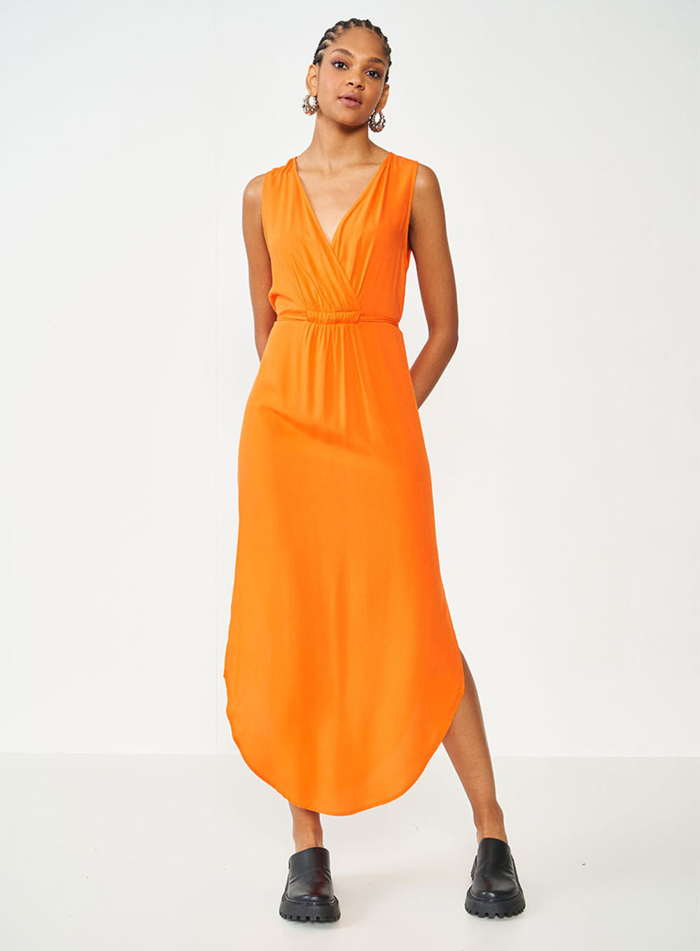 O Vestido Colcci Midi Confort em laranja é a escolha ideal para quem busca um look descontraído, sem abrir mão da elegância. Com modelagem solta e caimento confortável, a peça oferece liberdade de movimento e um toque fashion para o dia a dia ou ocasiões casuais.